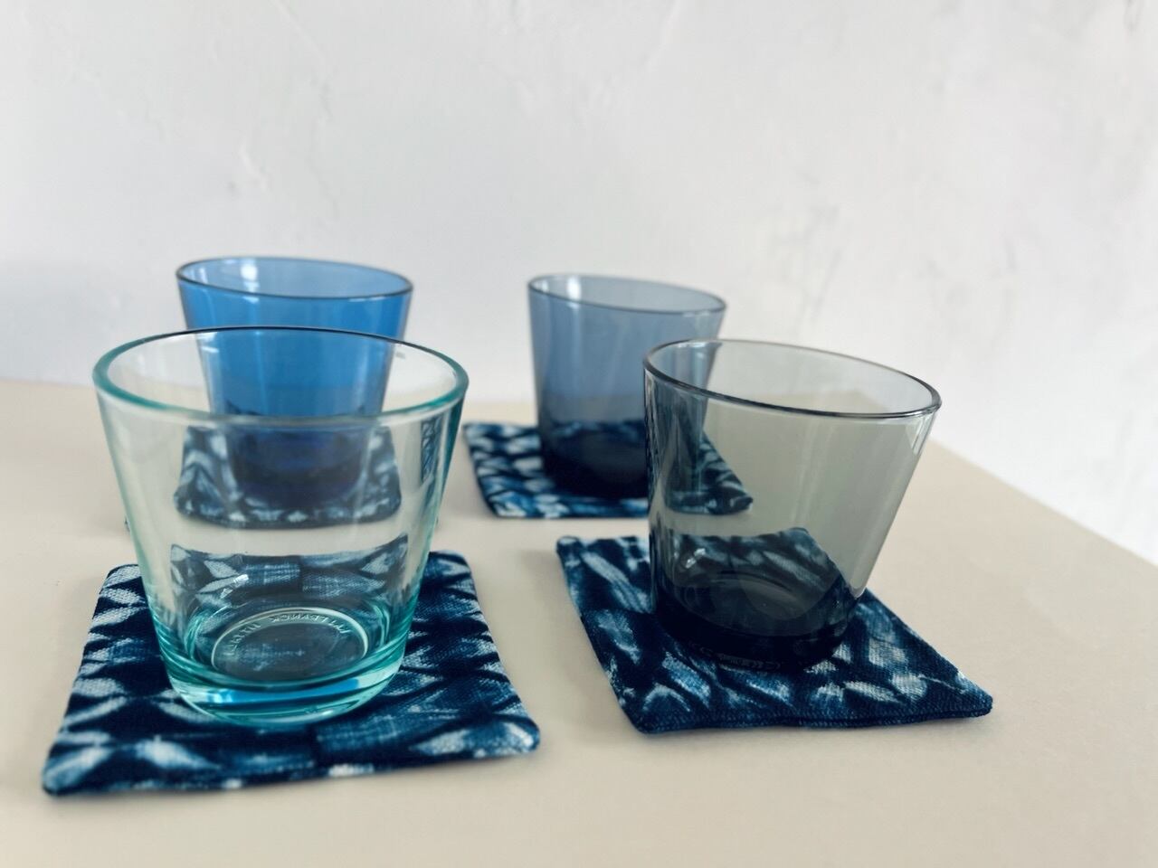 日常に使える藍染めのコースターです。手作りで、ほっこり感も有りますが、モダンなグラスや陶器にもしっくり馴染みます。